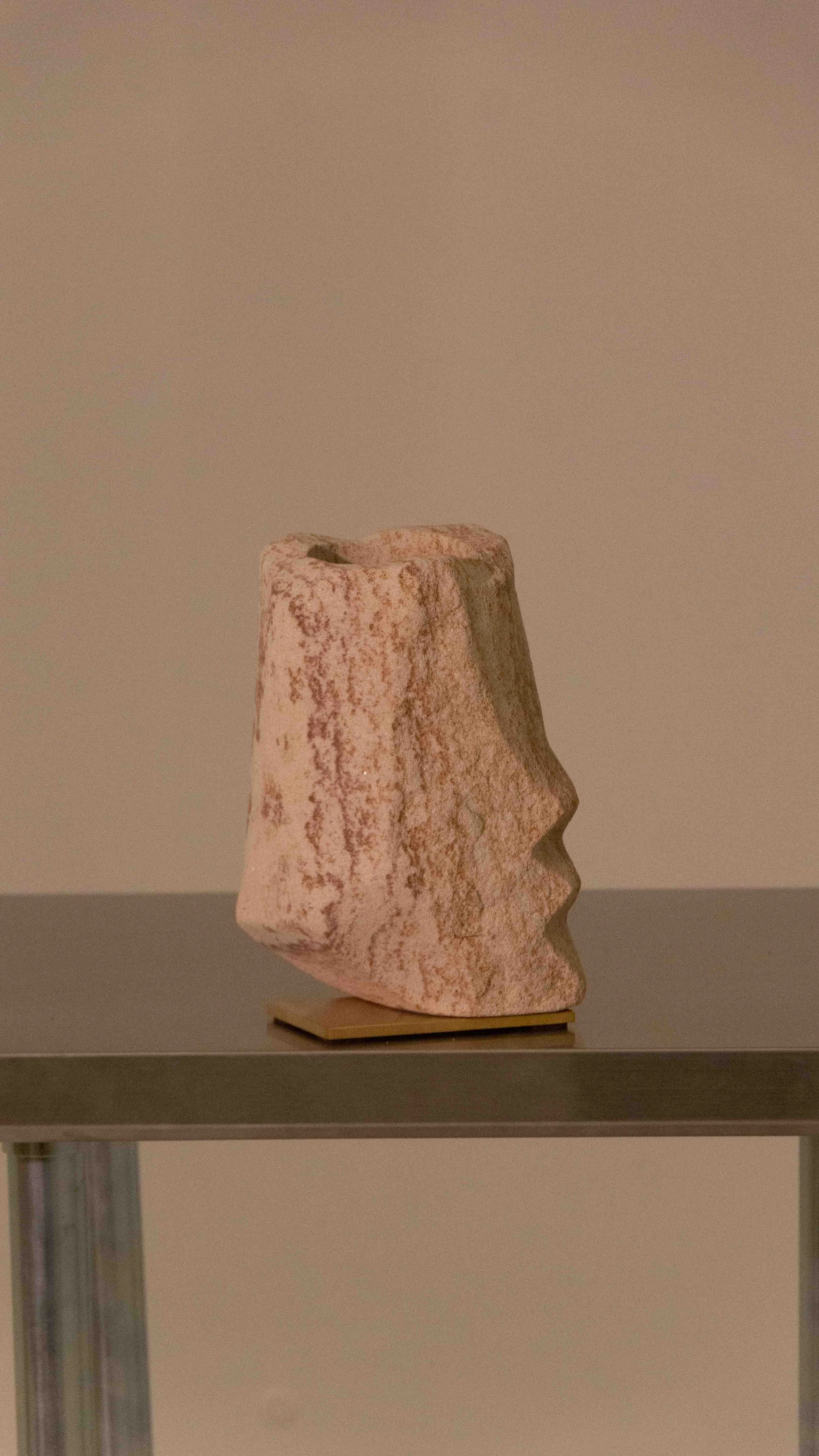 Materials Tom has used throughout the creation of these pieces: Australian Hawkesbury sandstone, solid brass, stainless steel, each sculpture comes with a removable glass cylinder for your fresh florals.